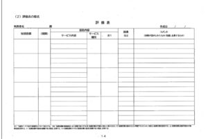 評価表は、ケアサービスにおける短期目標の達成状況を確認するための書式です。その様式には担当者のコメントが記入され、次のケアサービスへの提案を提供します。
